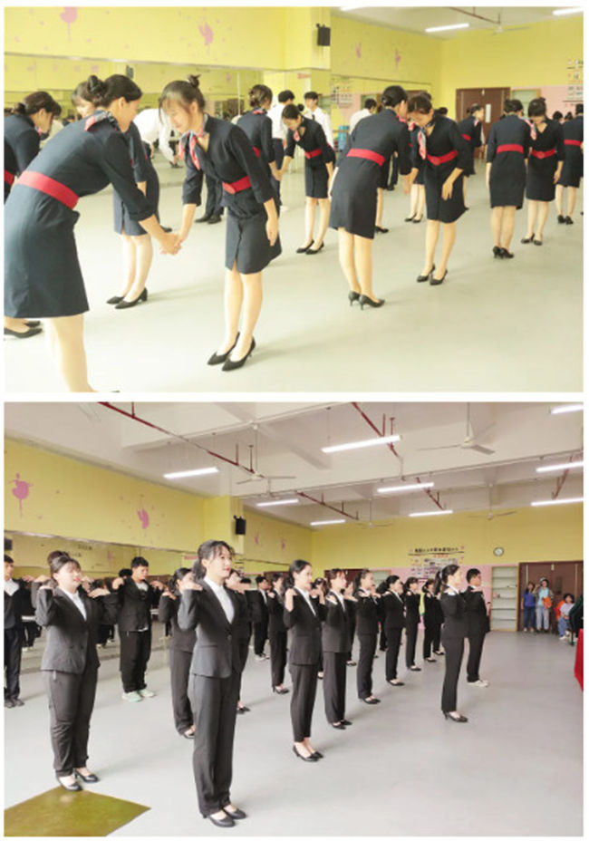 中西餐摆台难不倒同学们,考验形体和仪态的礼仪操同样难不倒他们!由旅游与酒店管理、航空服务专业联合发起的2020级礼仪操为我们呈上一场养眼的仪容仪态展示。