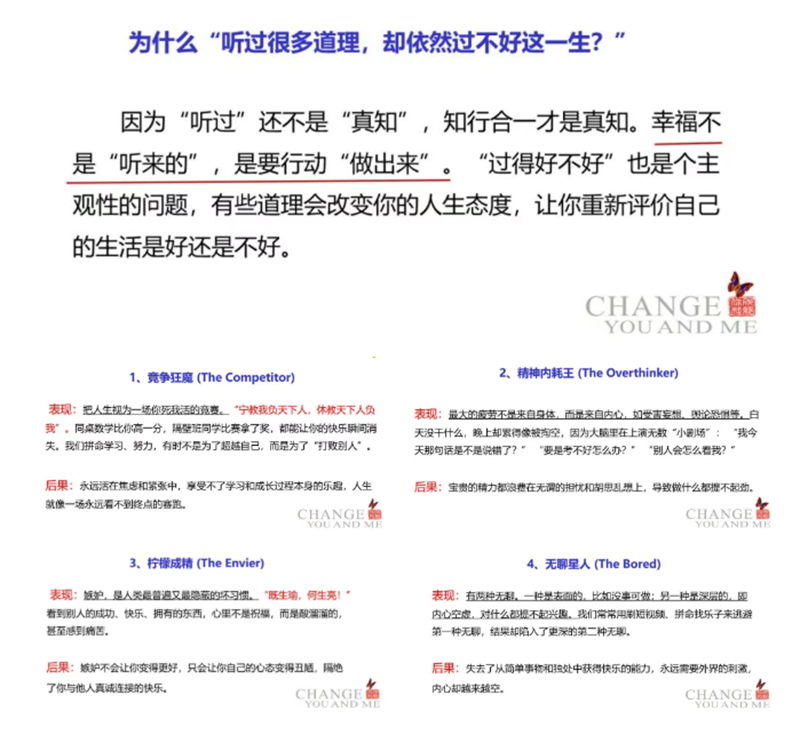 随后,尹校为大家带来了罗素亲授的四大“幸福法宝”:以“兴致” 探索万物,发现生活乐趣;以“情爱” 连接彼此,收获温暖力量;在“建设性工作” 中创造价值,体验成就感;并学会“努力与放弃” 的平衡智慧,为心灵减负。