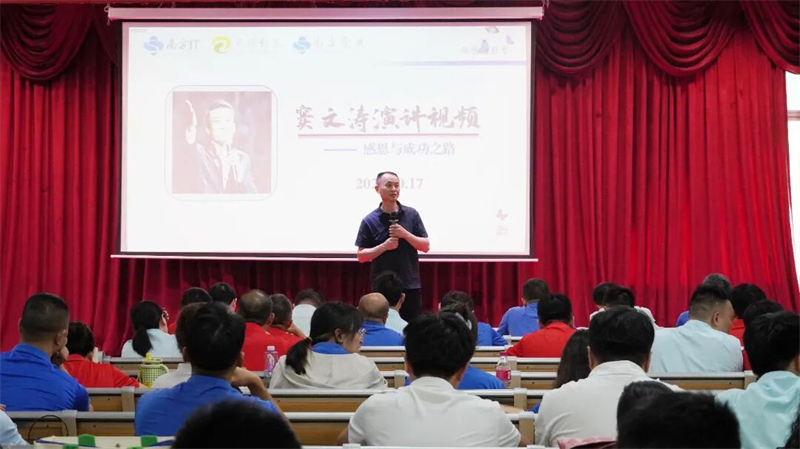 随后,全体教师共同观看视频。窦文涛以其标志性的幽默与深刻,在轻松氛围中分享了对成长、感恩与成功的见解。他结合亲身经历,娓娓道来如何以平和心面对挑战,在坚持中沉淀智慧,并感恩成长路上的重要力量。