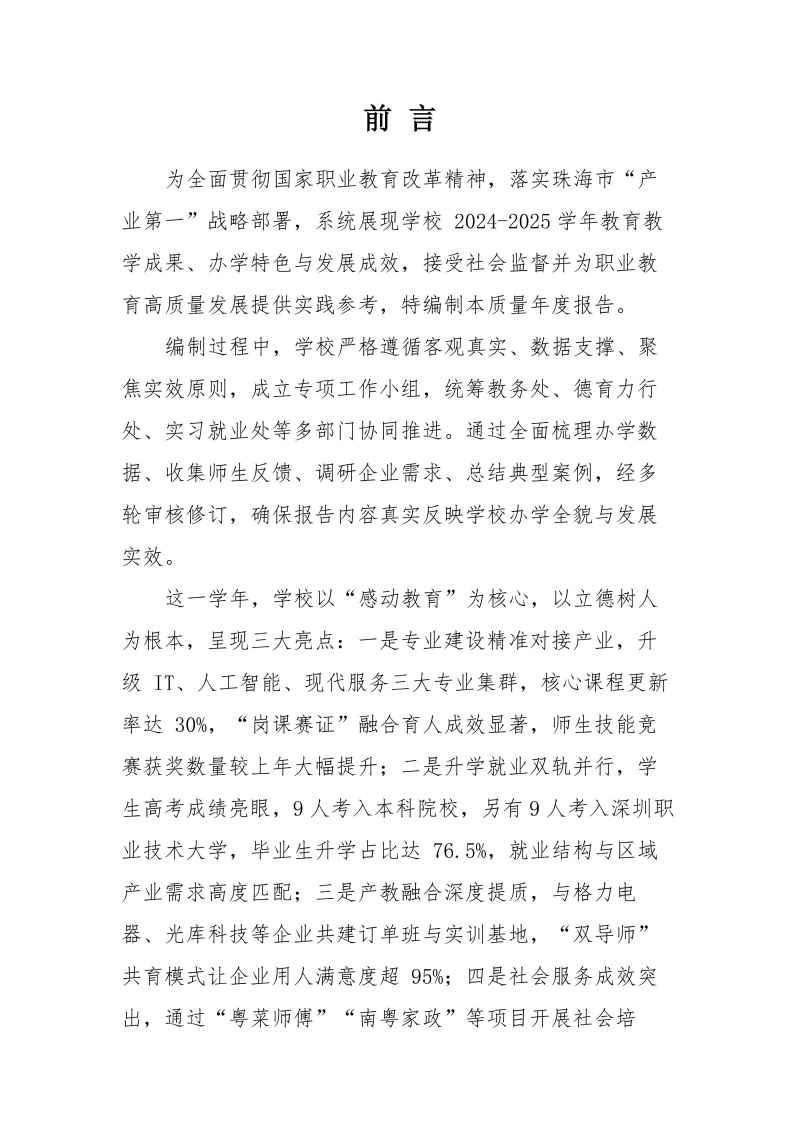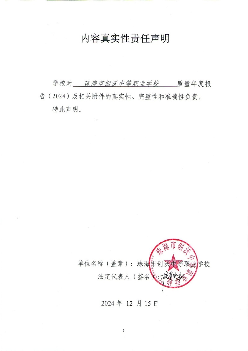 珠海市创沃中等职业学校 2025年教育质量年报