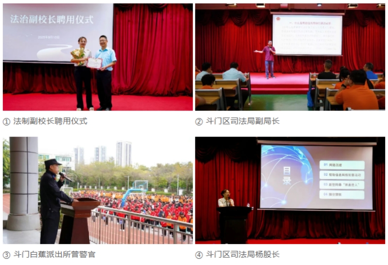 法治教育是未成年人认识世界、融入社会的基石。清晰的规则意识与法律边界感,是保护他们远离陷阱、明确权责的安全网。为此,我们不仅常态化聘请法治副校长,将专业的法律知识带入校园,更积极拓展资源,邀请斗门区司法局深度参与,共同打造“民法典宣传月”等法治宣传活动。