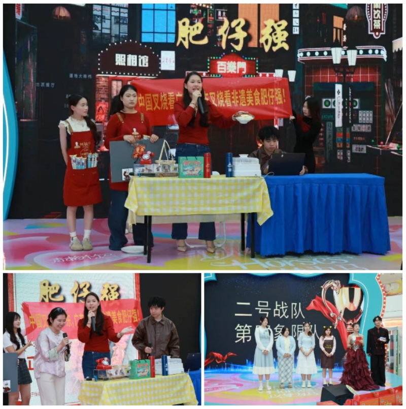 决赛现场,面对“非遗老味道——肥仔强大赤坎叉烧”“省级非遗美食——何叔公鸭扎包”等特色产品,我们的同学化身王牌主播,不仅深入讲解产品工艺与文化内涵,更巧妙结合消费者心理,设计出令人心动的购买理由与促销机制。