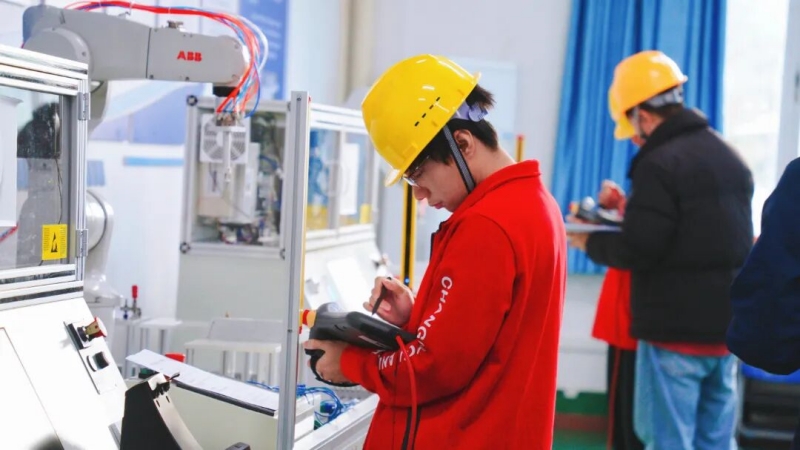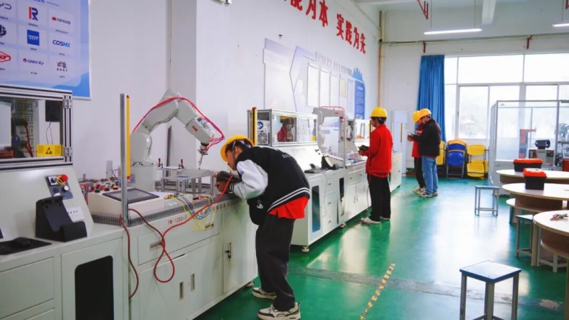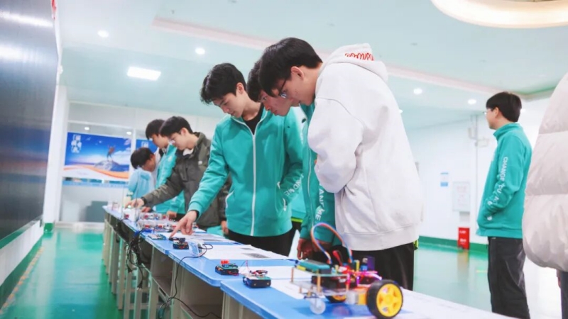 在这里,同学们学习与机器人对话:先排查控制器故障,再为机械臂精准标定坐标,最后通过编程指挥它完成绘图、搬运等任务。