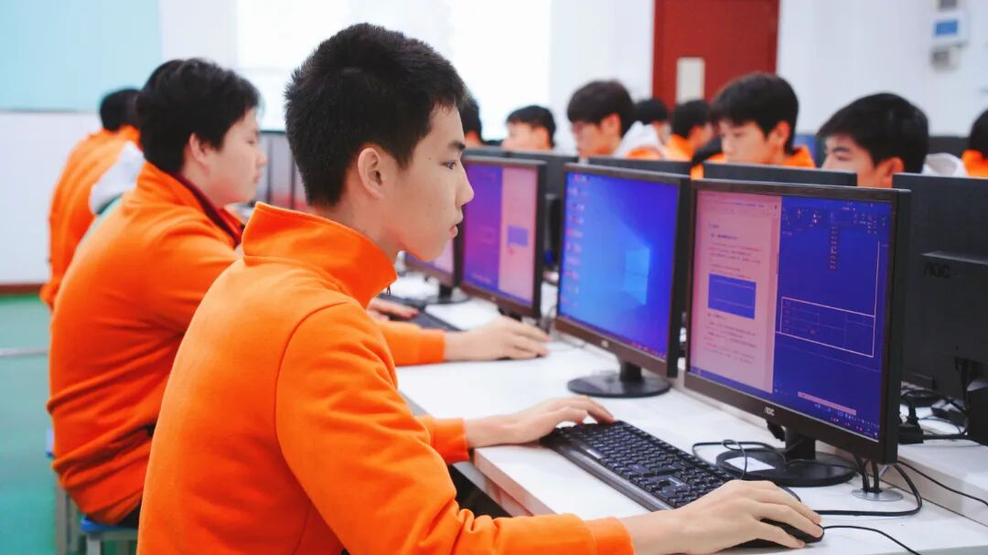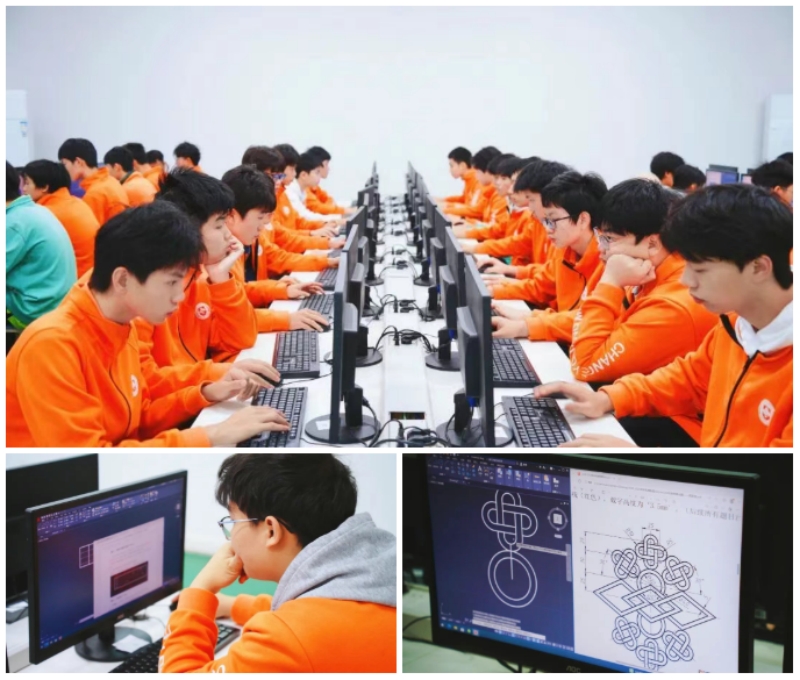 这边,在机房的机械制图与CAD技能竞赛中,同学们是出色的设计者。他们熟练操作软件,将脑海中的三维构想,用标准、规范的图纸精确表达出来,每一条线、每一个尺寸都精益求精。